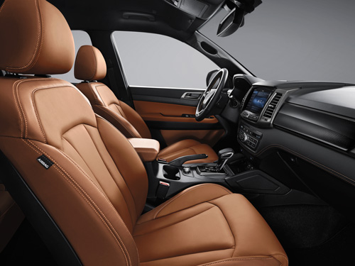 Papildu aprīkojumā pieejamie sēdekļi ar mīkstas Nappa ādas apdari atspoguļo jaunā Musso izcilās rūpes par kvalitāti un detaļām.