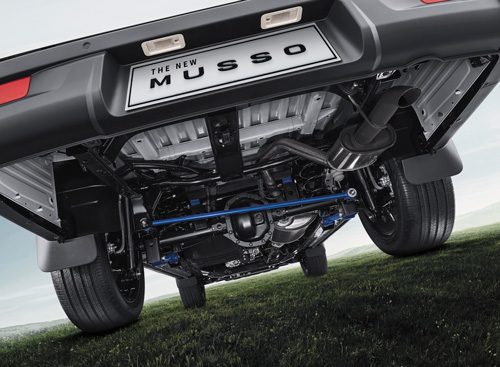 Musso piecu sviru aizmugures balstiekārta. Tiltu ar virsbūvi savieno 5 sviras un spirālatsperes. Tas ir vienīgais vidēja izmēra pikaps, kas piedāvā spirālatsperu balstiekārtu un nodrošina ērtu braukšanu pat uz nelīdzena seguma. Šāda sistēma ir piemērotāka lietošanai bezceļos un sniedz vieglajam automobilim līdzvērtīgu komfortu, braucot ar mazāku kravas daudzumu.