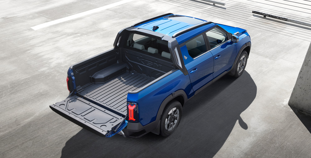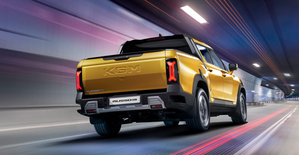 Robustais aizmugures dizains un izteiksmīgā kravas nodalījuma durvju forma skaidri pauž Musso EV atšķirīgo identitāti no jebkura leņķa. Raksturīgais aizmugurējo lukturu dizains noslēdz spēcīgo iespaidu, apvienojot autentisku pikapu mantojumu ar modernu pieskārienu.