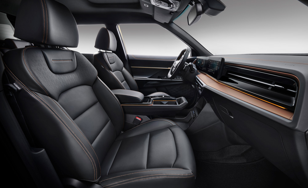 Šis attēls ir tikai ilustratīviem nolūkiem. Musso EV ir pieejams tikai ar melnu salonu.
