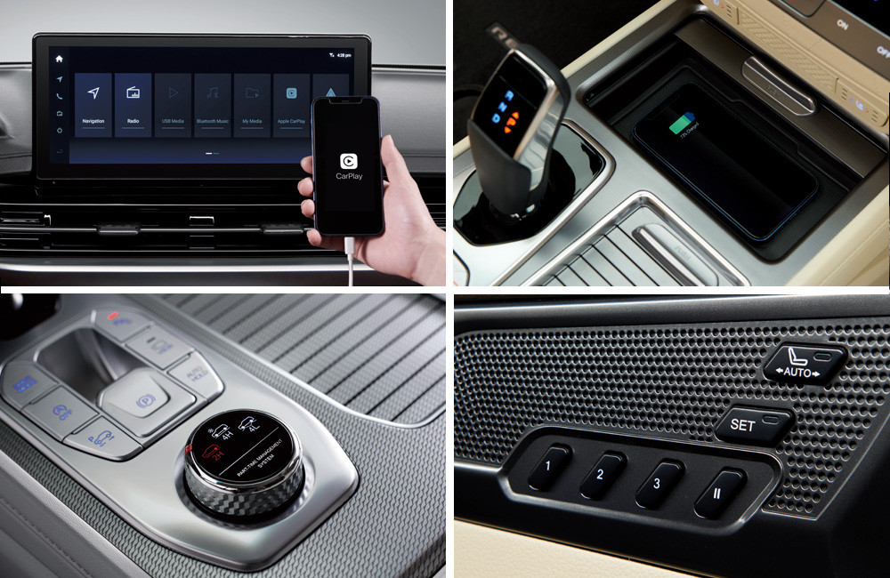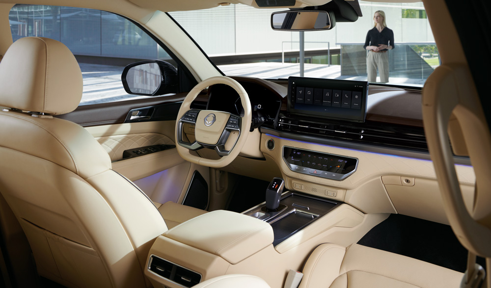 Rexton standarta aprīkojumā ietilpst skārienekrāns ar navigācijas sistēmu un dubulto Bluetooth funkciju. Papildu aprīkojumā ir pieejams 360 grādu apkārtskata monitors, kas atvieglo novietošanu stāvvietā un sniedz vadītājam pārliecību pat visšaurākajās vietās.